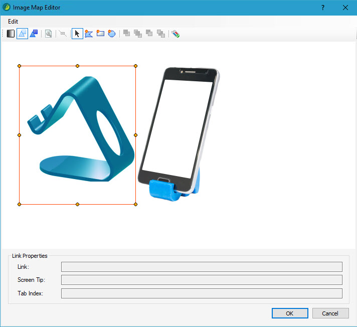 Right-click onto the inserted image in the editor and select Image Map from the local editor. A copy of the image will appear in the editing box.