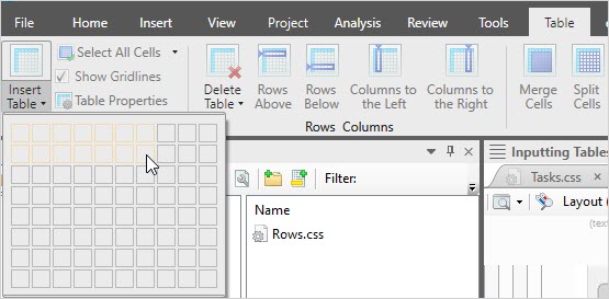 Inserting Tables into the Editor