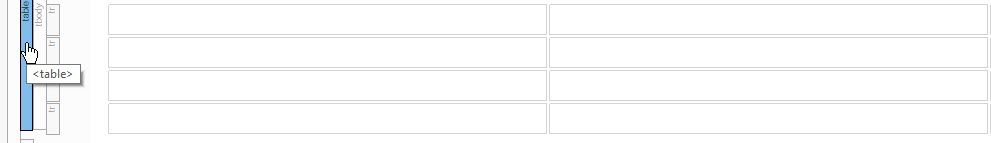 The inserted table is annotated as <table> in the left block structure bar, shown below.