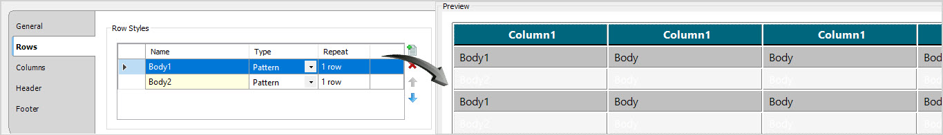 Formatting the 'Rows' stylesheet