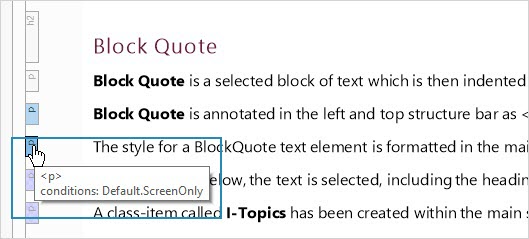 The condition 'ScreenOnly' is tagged to the selected text, shown below. The tagged lines are shaded using the 'ScreenOnly' conditional tag.
